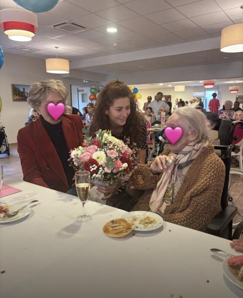 Aujourd’hui, nous avons eu l’immense plaisir de célébrer les 100 ans de notre résidente, Lucienne, un moment rare et profondément émouvant. Entourée de sa famille, des résidents, des salariés et de représentants de la mairie, Lucienne a soufflé ses bougies dans une ambiance conviviale, pleine de rires, de souvenirs et de tendresse.