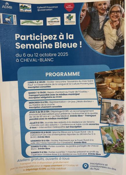La Semaine Bleue a débuté cette année en partenariat avec la commune de Cheval-Blanc, marquant une belle occasion de sensibiliser et de fédérer autour des questions liées au vieillissement et au rôle des aidants.
