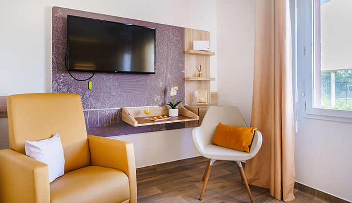 Les chambres sont meublées et équipées d’un système d’appel permettant d’obtenir l’aide et l’assistance médicale nécessaires. Vous avez la possibilité d’aménager votre chambre avec du petit mobilier personnel.